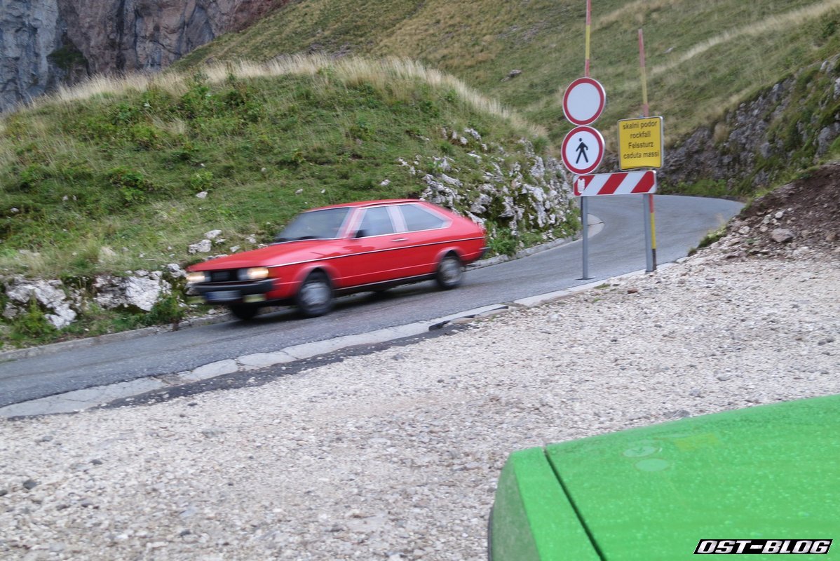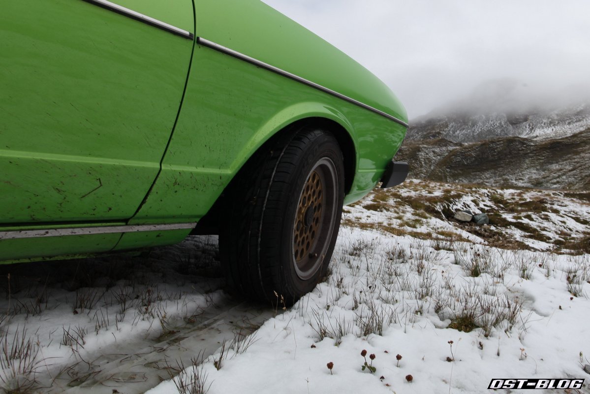 Bei den Reifen, ich zeige nachher noch ein Bild, auch kein Wunder. Zudem hat sich da irgendwo wieder was am Fahrwerk zerlegt. Ich bin mir nicht sicher ob es wieder ein Domlager ist. Das hatte ich schon bemerkt, nachdem ich auf der wirklich letzten Rille ein Passkehre genommen hatte um einen unliebsamen Schleicher zu überholen. Ich glaube meine durchgehend quietschenden Reifen hat man noch im Tal gehört…