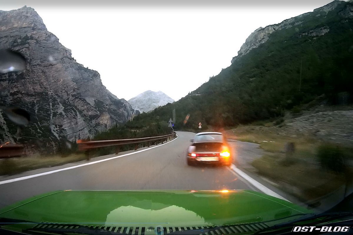 Somit betrug die Entfernung nach Hamburg jetzt gut 1150 Kilometer. Schon ein ganzes Stück und ich hätte auch die Mögichkeit gehabt bei Johannes in Eichstätt eine weitere Nacht zu verbringen. Zwischenzeitlich habe ich das auch mal in Erwägung gezogen. Das Wetter war am Rückreisetag nicht wirklich besser, es standen noch zwei Pässe auf dem Plan, wovon der erste Pass wegen eines Radrennes bei unsere Ankunft gesperrt war. Umdrehen zwecklos, das hätte einen riesigen Umweg nötig gemacht. Also ausharren und abwarten. Das hat alles richtig Zeit gekostet.