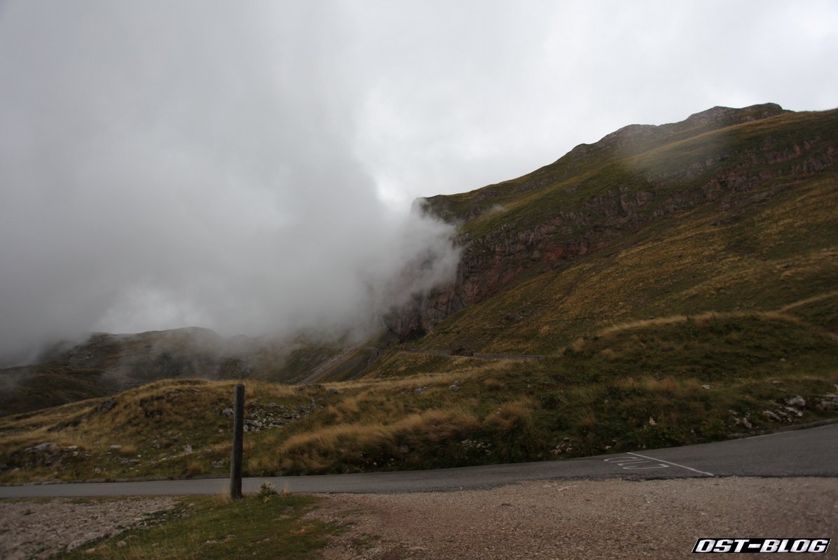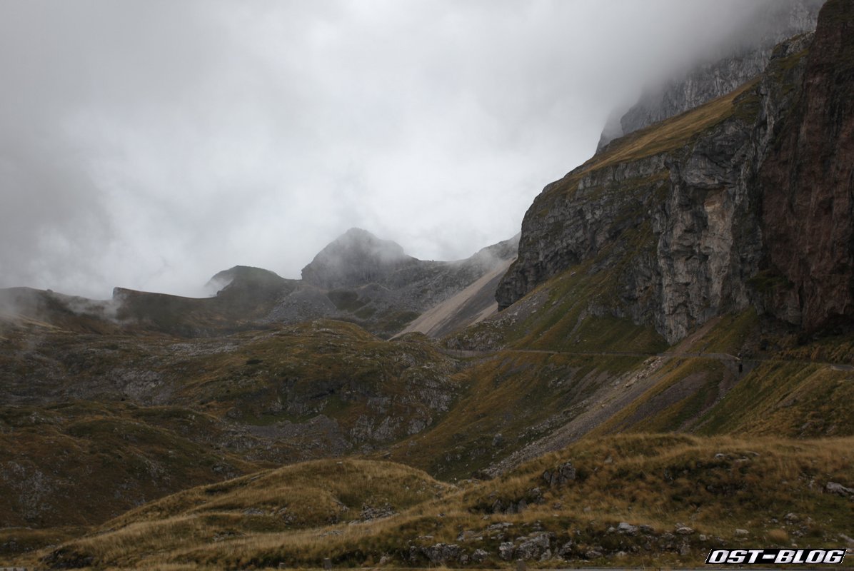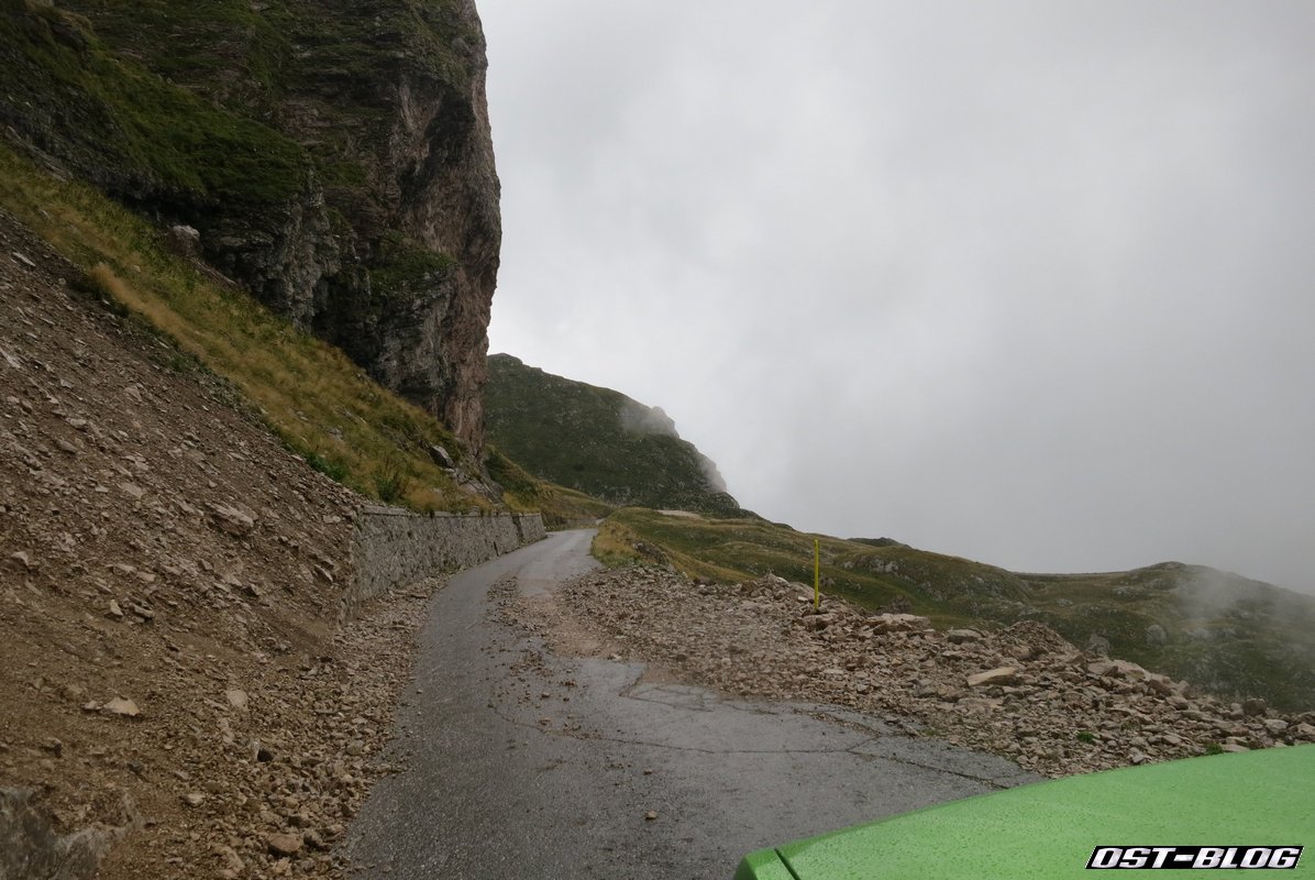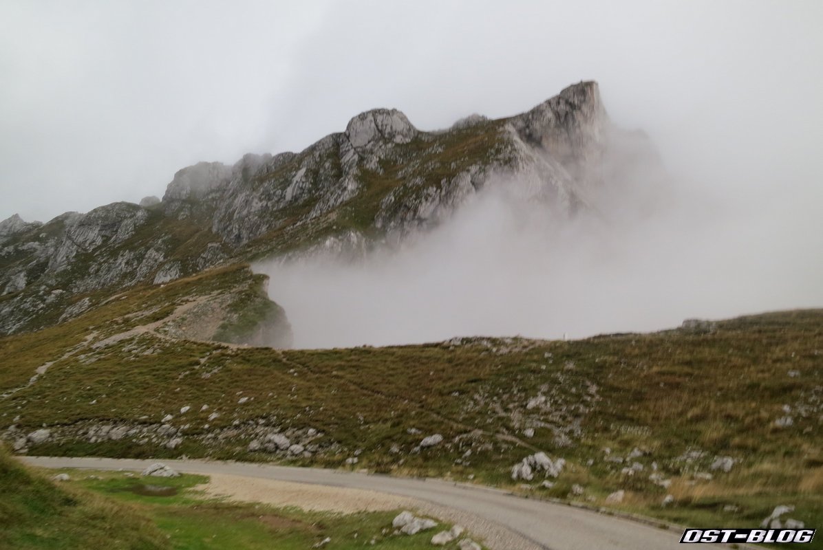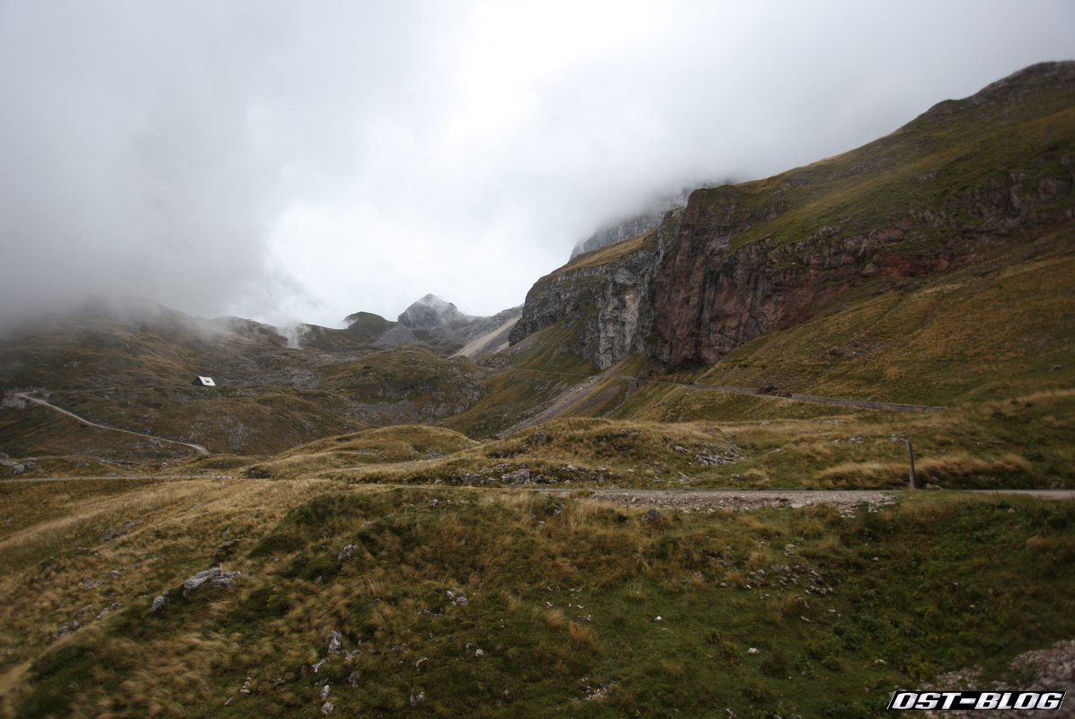 Also weiter. Denn ein großes Ziel hatten wir noch vor uns. Die Mangartstraße, die hinauf zur Lahnscharte und dem Fuße des Mangarts führt. Es ist die höchste Straße Sloweniens und wohl bei unserem Besuch wohl auch die mit dem fiesestem Wetter.