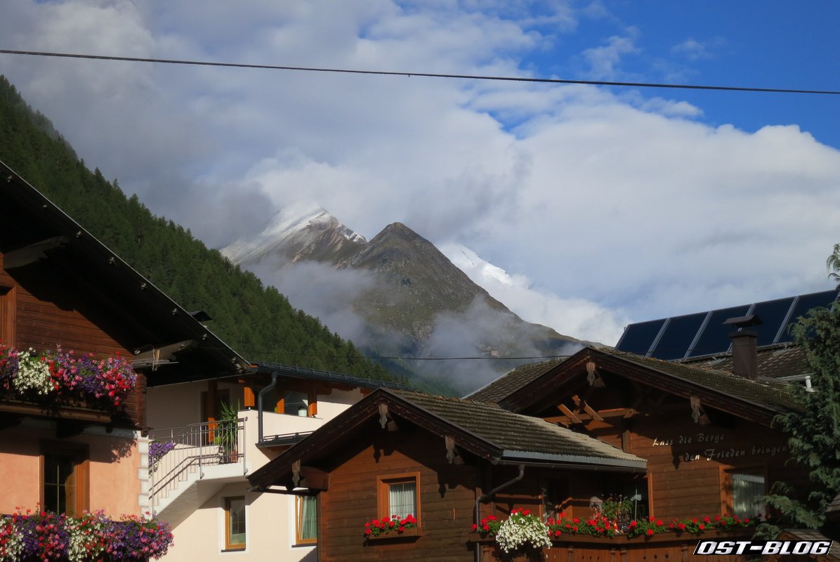 Das hat uns nämlich ganz gewaltig einen Strich durch die Rechnung gemacht. Von dem Dauerregen des Vortags und in den nächsten Tagen, den uns der Gastwirt noch am Vorabend bescheinigt hatte, war nämlich nichts zu sehen. Morgens um halb zehn in Heiligenblut: Die Sonne zeigt sich.