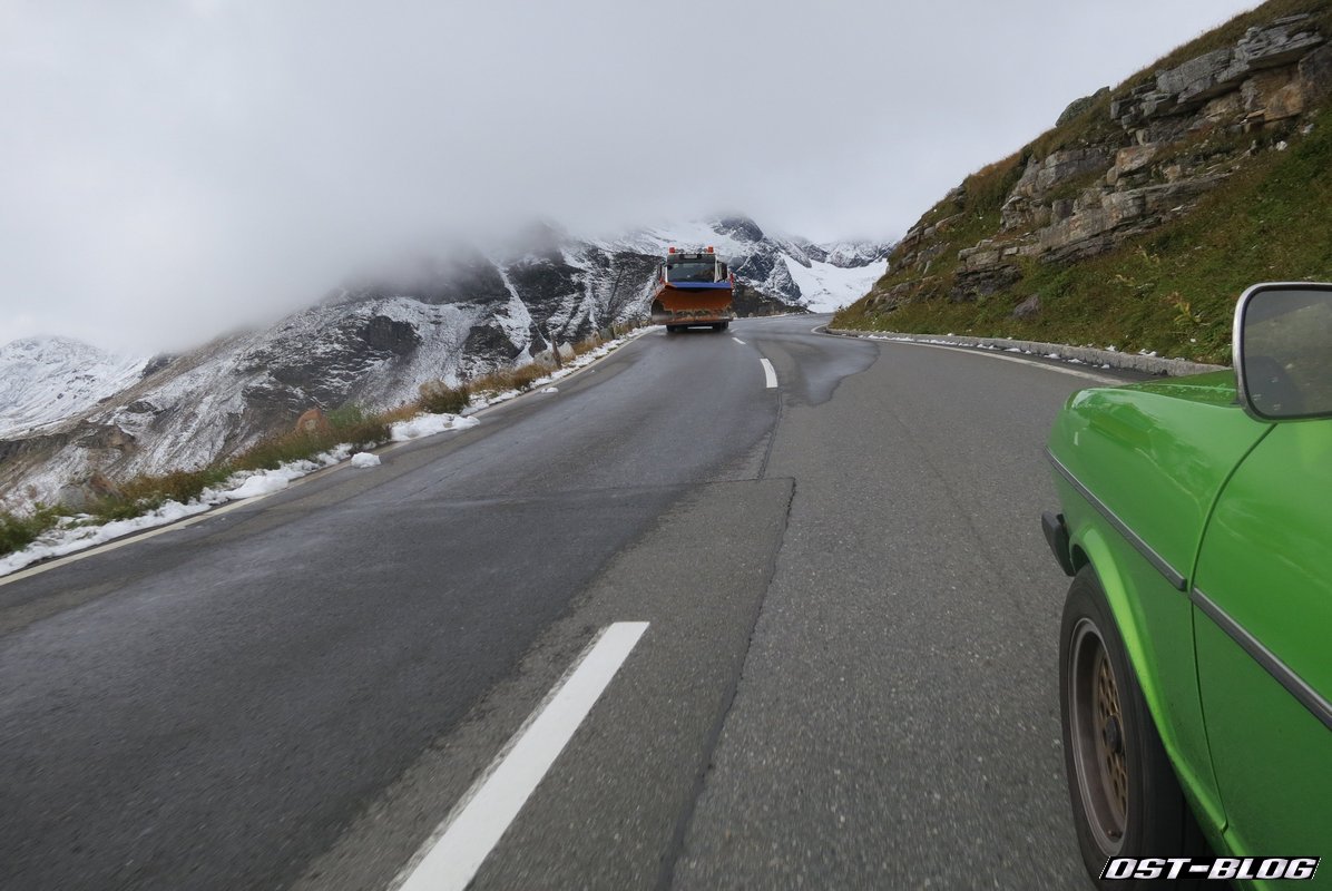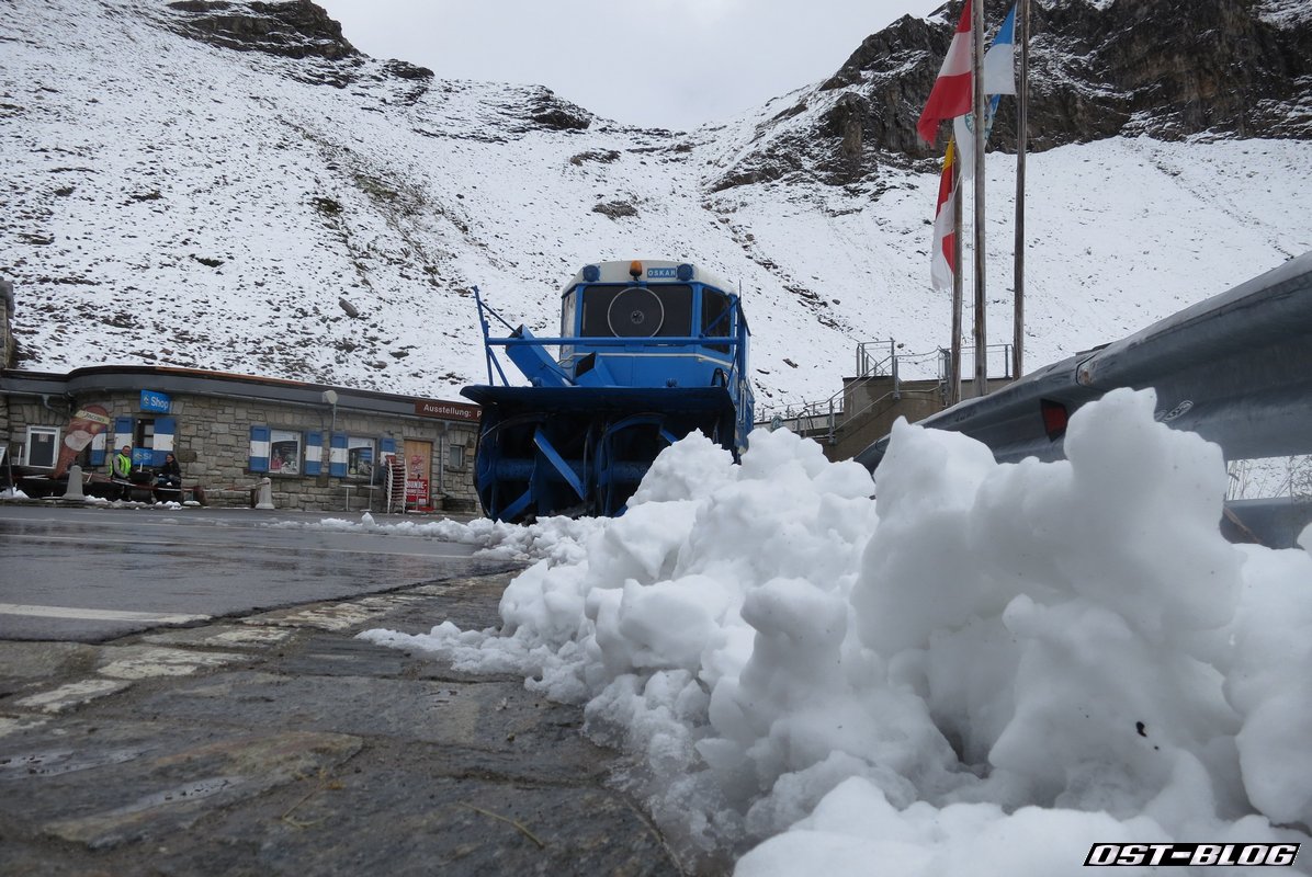 Na gut, die Fräse war noch nicht wirklich in Betrieb, aber ein dicker Schneepflug kam uns kurz darauf tatsächlich schon entgegen.
