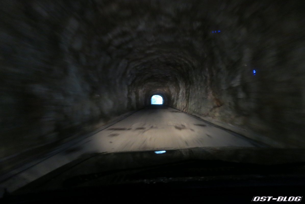 Hinab ging es dann in einer abenteuerlichen Kehrenkombination. Schön gleichmäßig übereinander gestapelt und jede zweite Kehre in einem Tunnel.