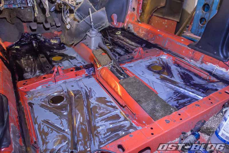 Jetzt kann ich auch den vorderen Bereich des Fahrerfussraums damit behandeln.