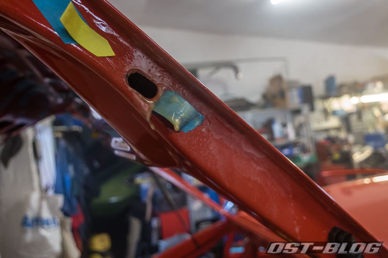 Den kompletten Fensterschacht hatte ich ebenfalls abgeklebt. Gerade das äußere Blech rostet hier sehr gerne.