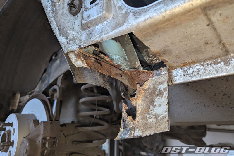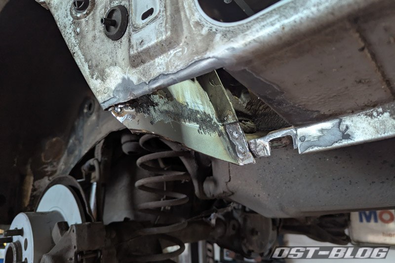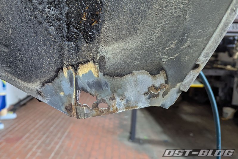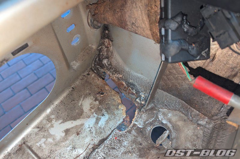 Also auch hier noch mal die Flex angeworfen und ein horizontalen Schnitt gesetzt. Raus mit dem Rotz und frisches Blech vorbereiten.