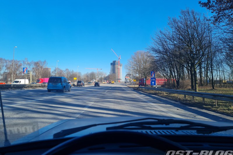 Vorbei am Stummel des Elbtowers, der auch zum heutigen Tag immer noch genauso trostlos dasteht, ging es zur Oldtimertankstelle.