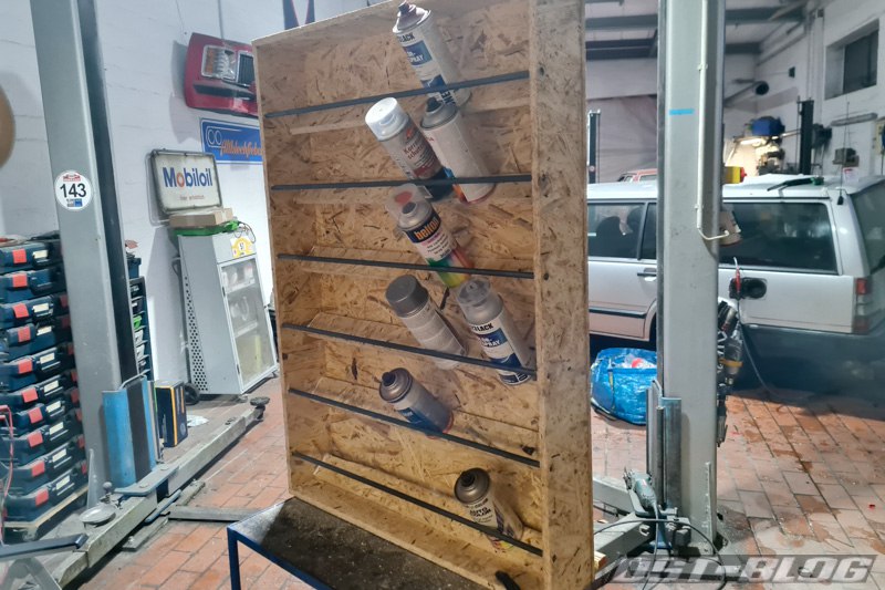 Das soll jetzt ein Regal für Sprühdosen werden und das ist es auch geworden.