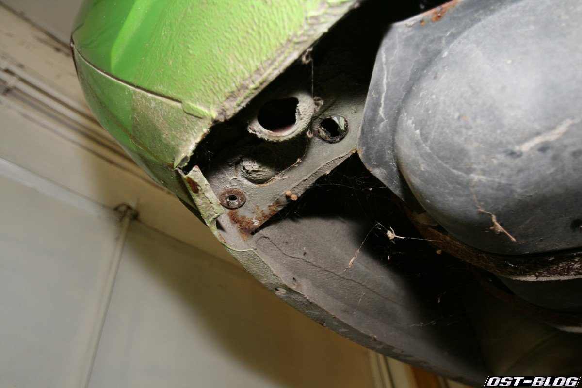 Der TS wurde im Mai 1995 abgemeldet und stand seit dem beim Verkäufer in der Scheune. Er hat mal angefangen ihn zu zerlegen, warum weiß er selber nicht mehr. Die komplette Inneneinrichtung, Front- und Heckscheibe, Stoßstangen, Scheinwerfer und Zierleisten waren demontiert. Es war aber alles vorhanden.