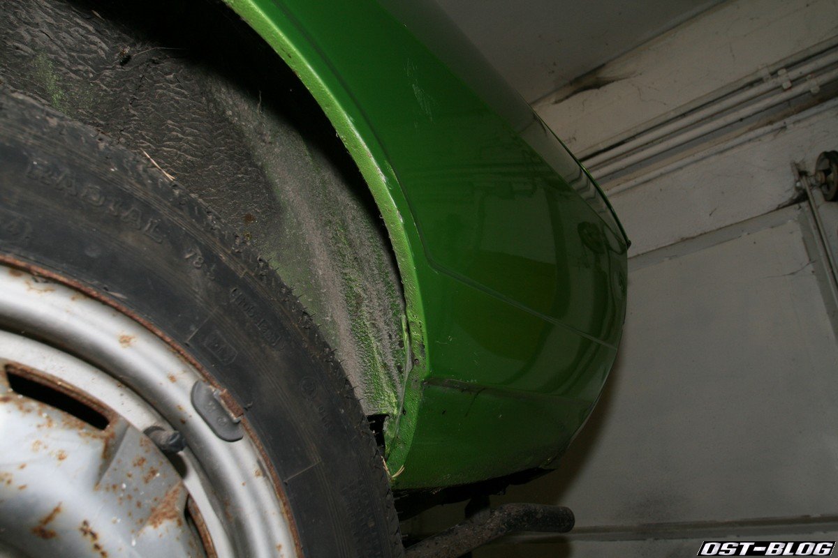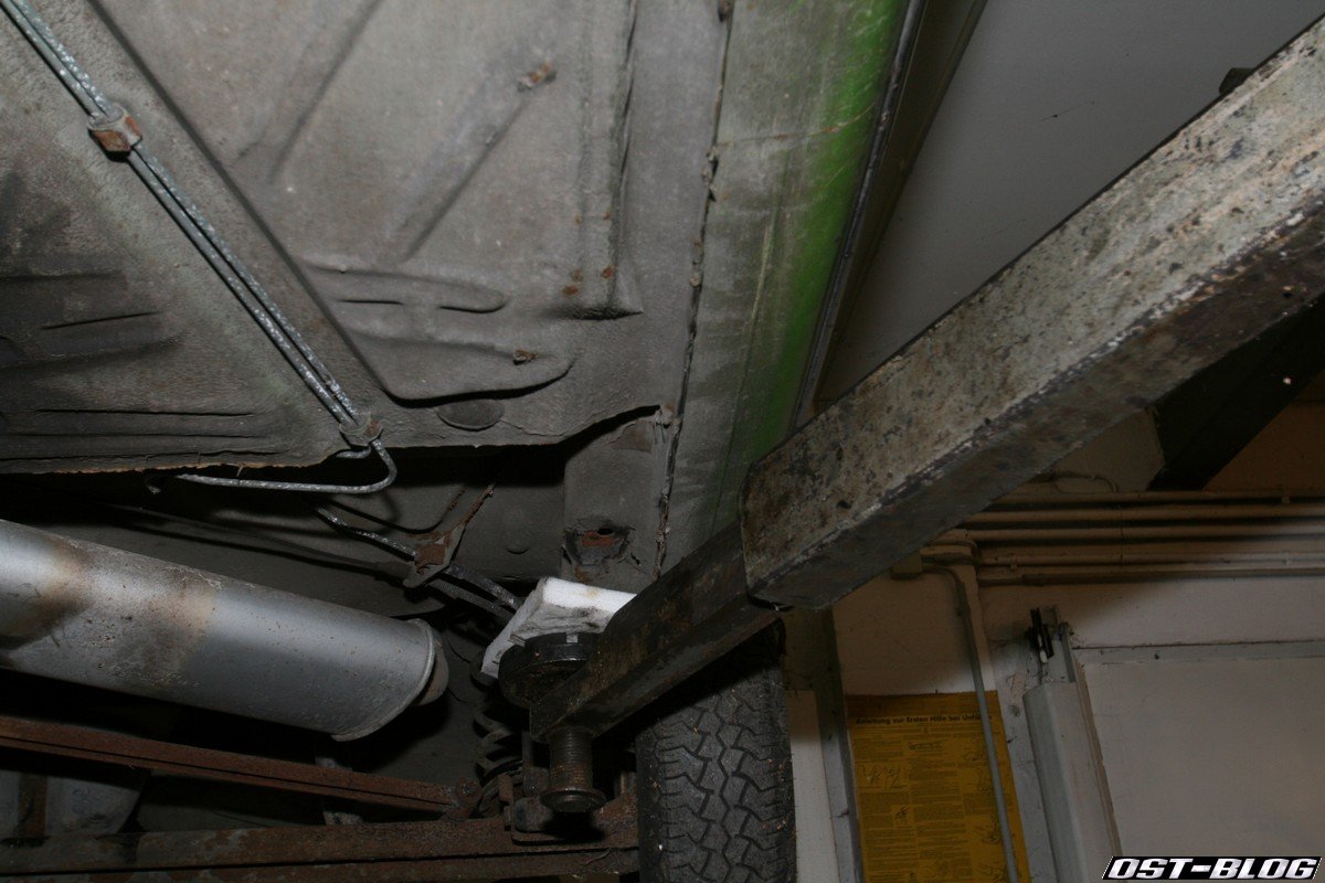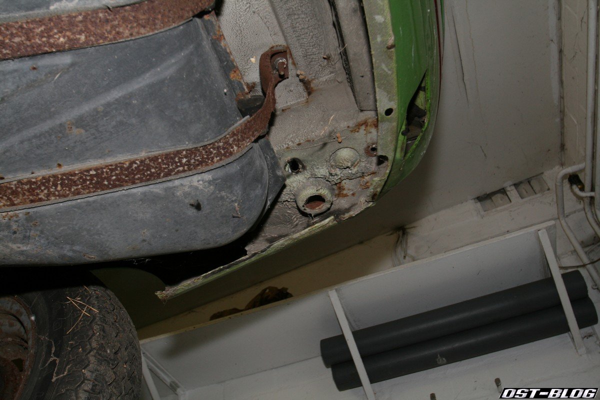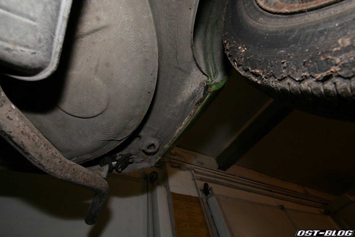 Ein Heckblech in diesem Zustand ist nun wirklich nicht alltäglich. Die einzige Stelle, die nach einem Schweißgerät verlangt, wird wohl die linke Endspitze sein. Ansonsten ist der Blechmäßig top. Bisher konnte ich keine der typischen Schwachstellen mit Mängeln orten. Achsaufnahmen, Kotflügelkanten, Dreiecksbleche, Schweller innen und außen, A-Säulen sehen bis jetzt absolut brauchbar aus.