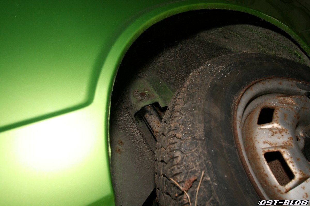 So wie es aussieht hat er rechts gerade erst eine neue Antriebswellenmanschette bekommen. 😉